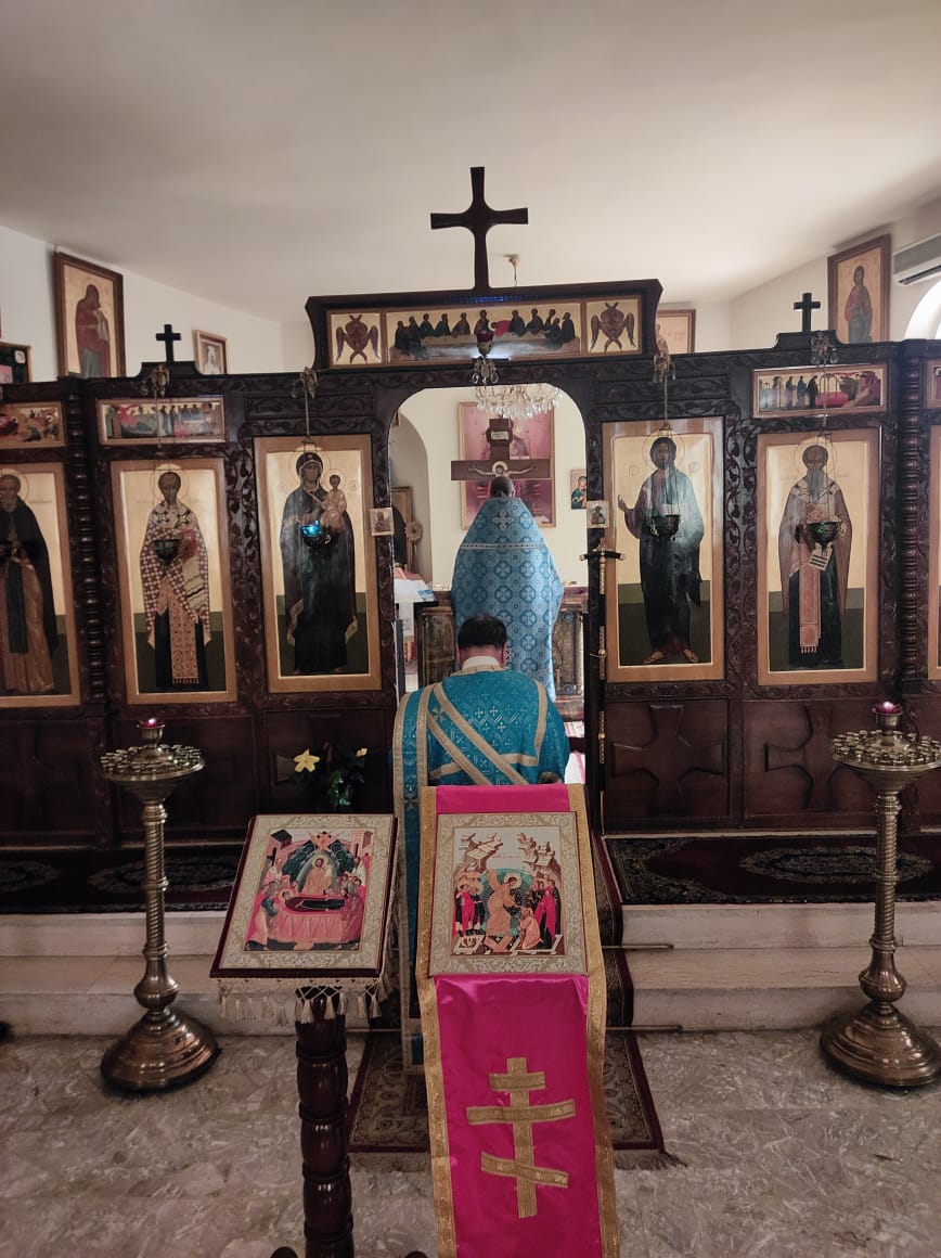 В воскресенье, 4 сентября, в Неделю 12-ю по Пятидесятнице Божественную литургию в храме святого священномученика Игнатия Богоносца при представительстве Русской Православной Церкви совершил архимандрит Филипп в сослужении диакона Максима Сабаха.