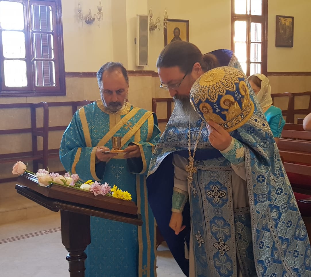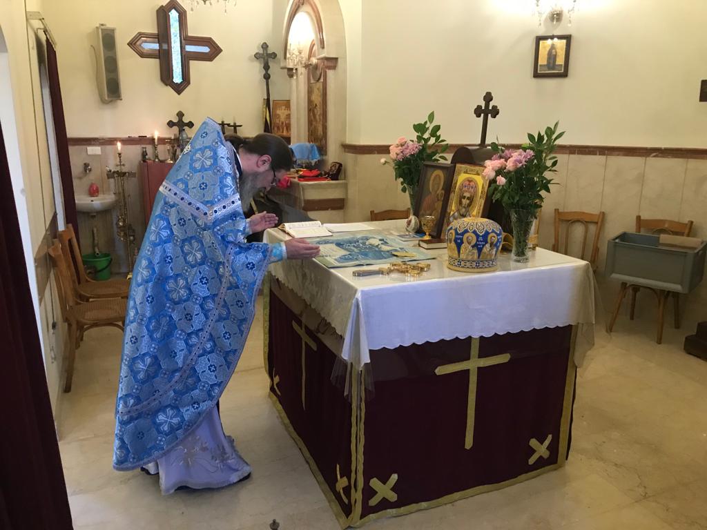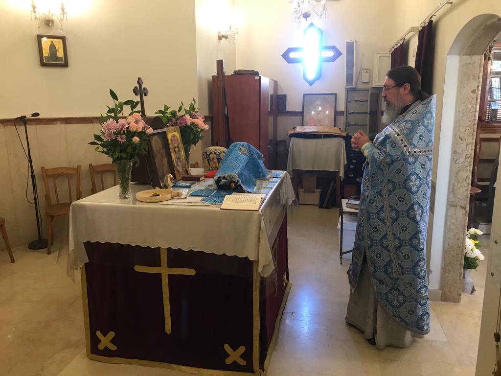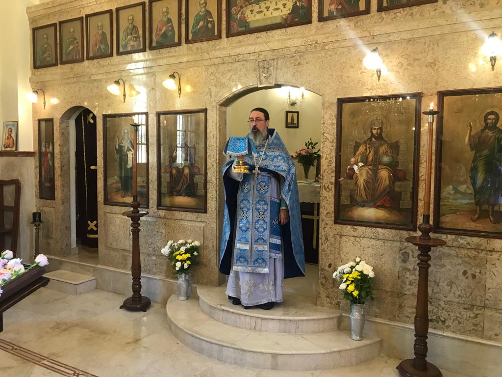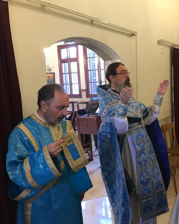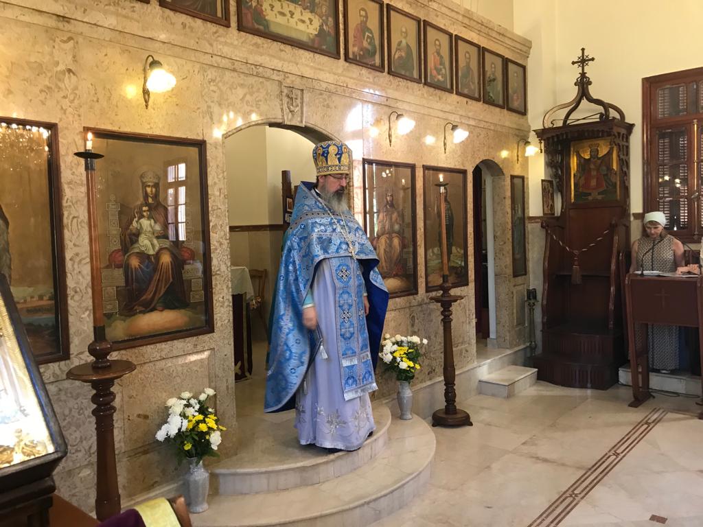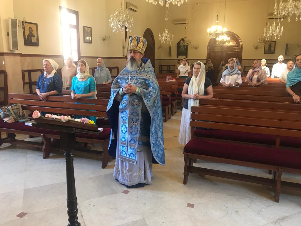 Богослужение совершил архимандрит Филипп в сослужении диакона Максима Сабаха. Богослужение совершалось на арабском и церковнославянском и арабском языках.