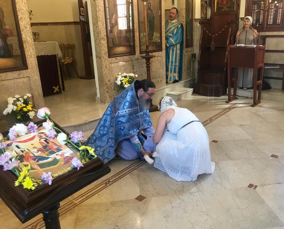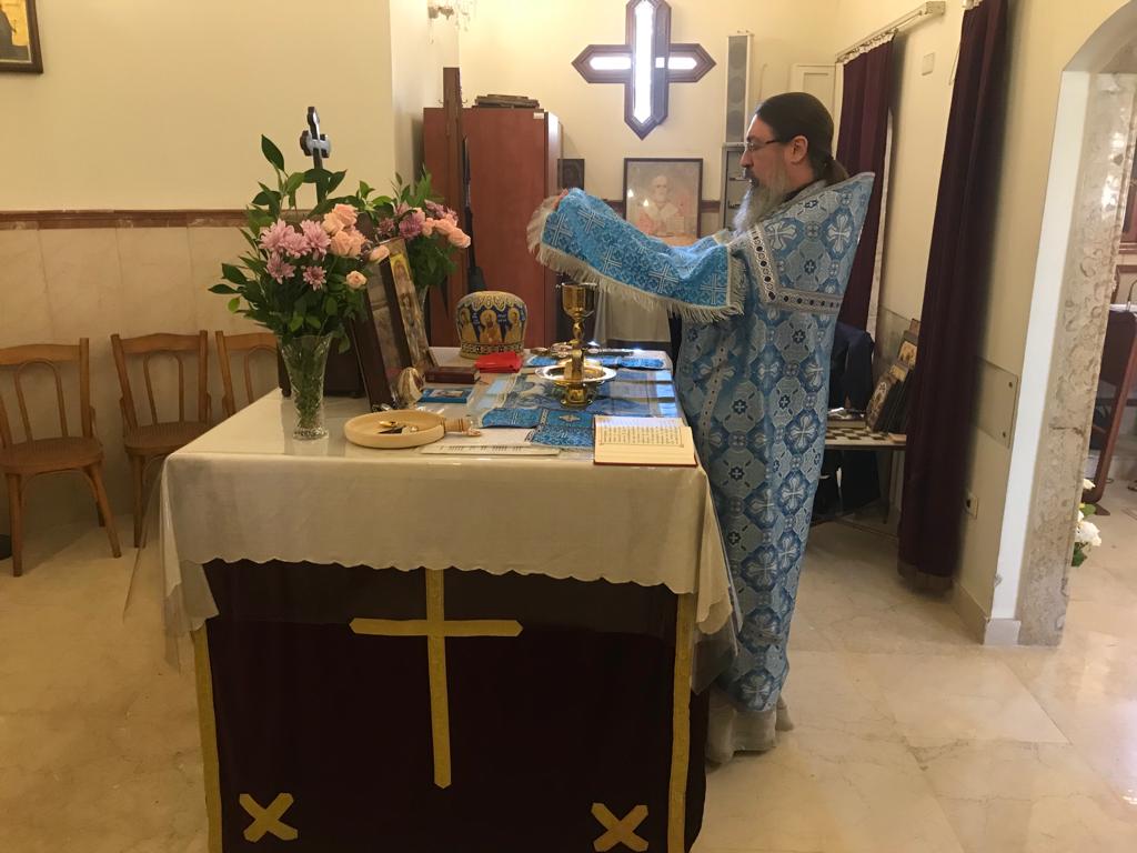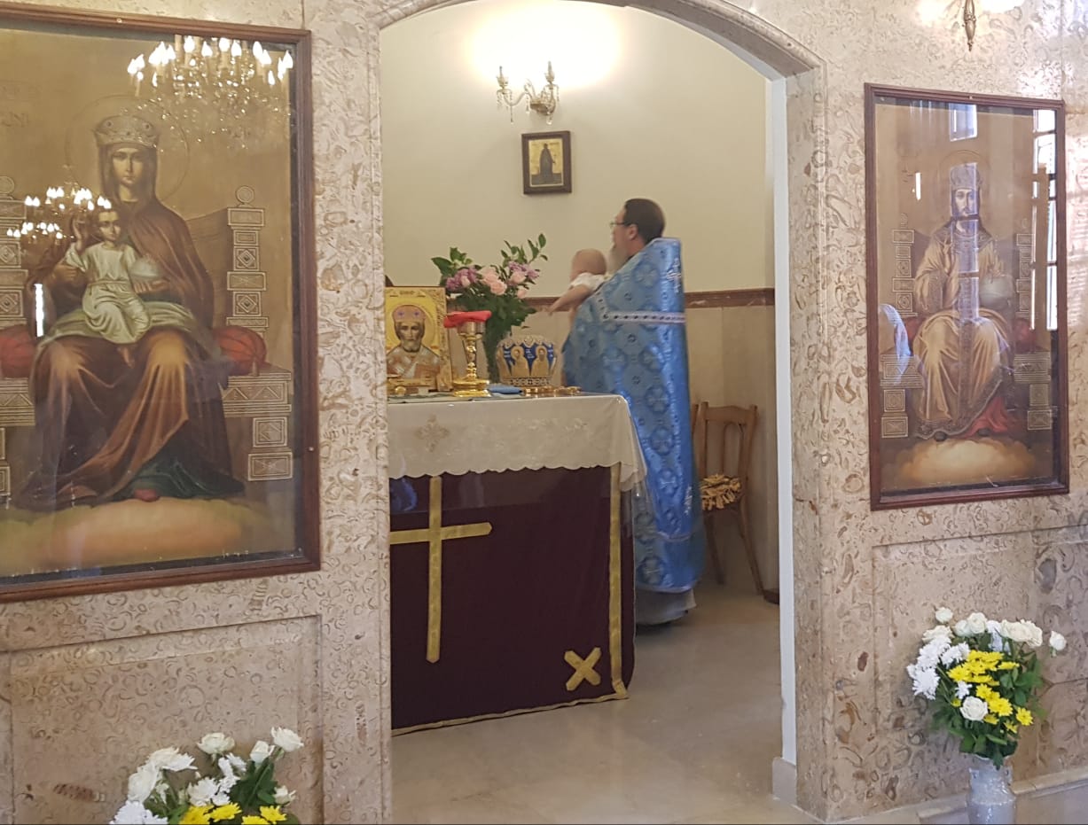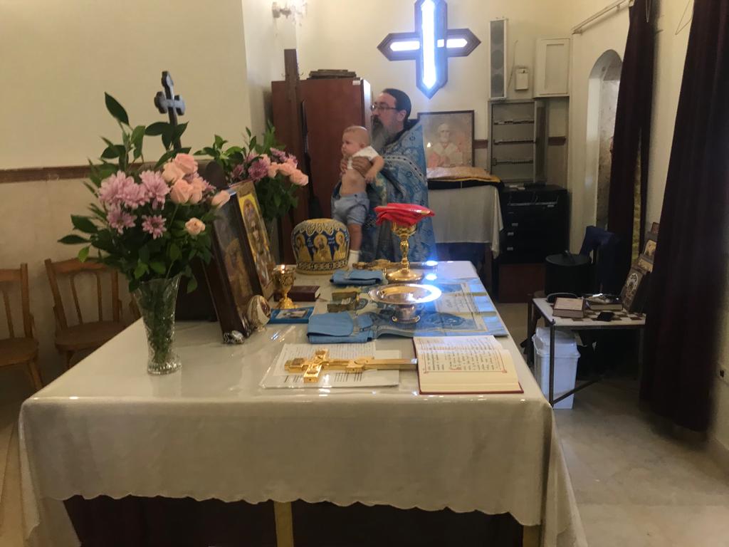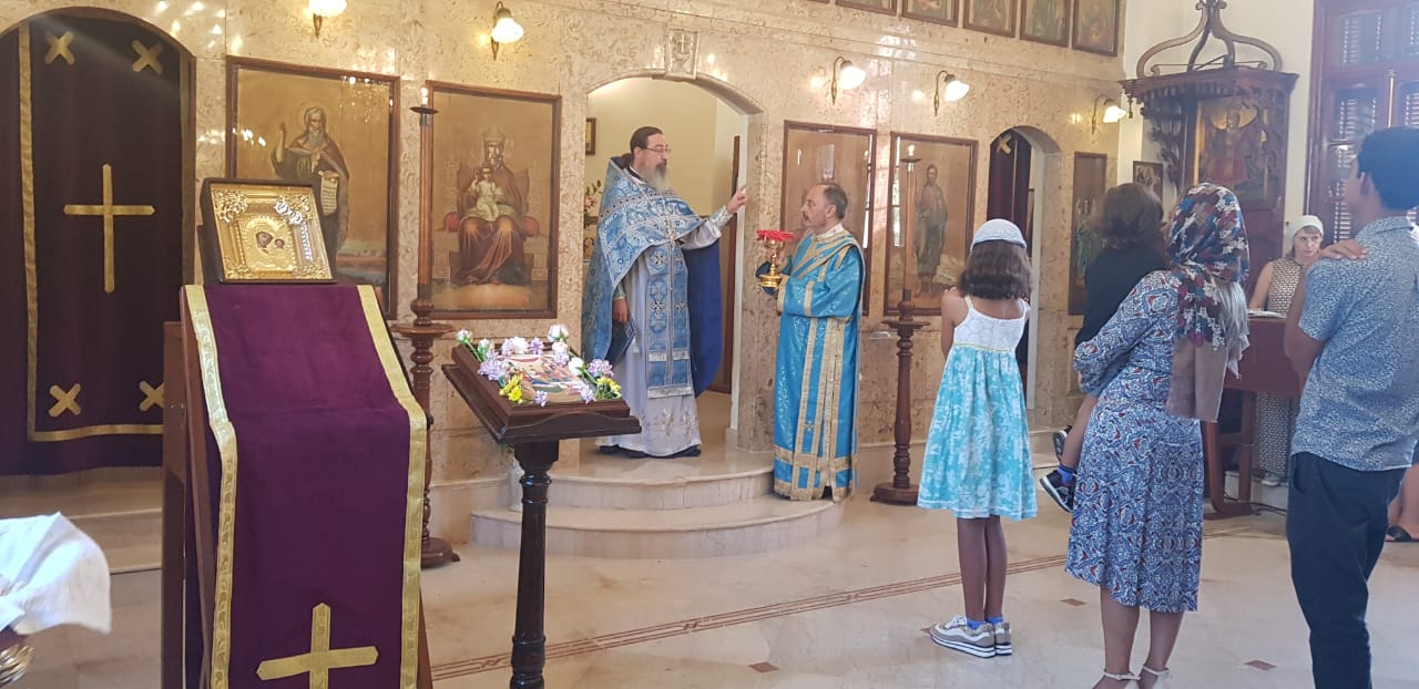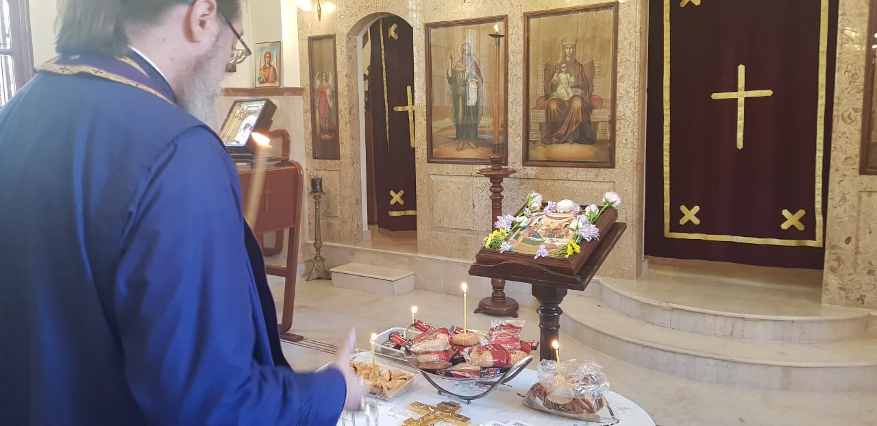 Богослужение совершил архимандрит Филипп в сослужении диакона Максима Сабаха. Богослужение совершалось на арабском и церковнославянском и арабском языках.