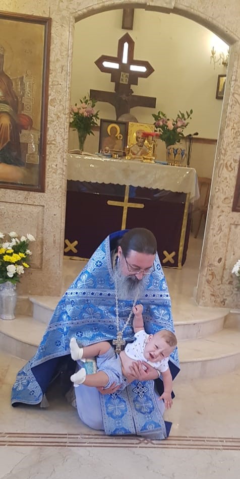 Затем настоятель поздравил с крещением сына Александру Хаддад и днём рождения Марию Массауд, вручил им памятные подарки и возгласил многолетие.