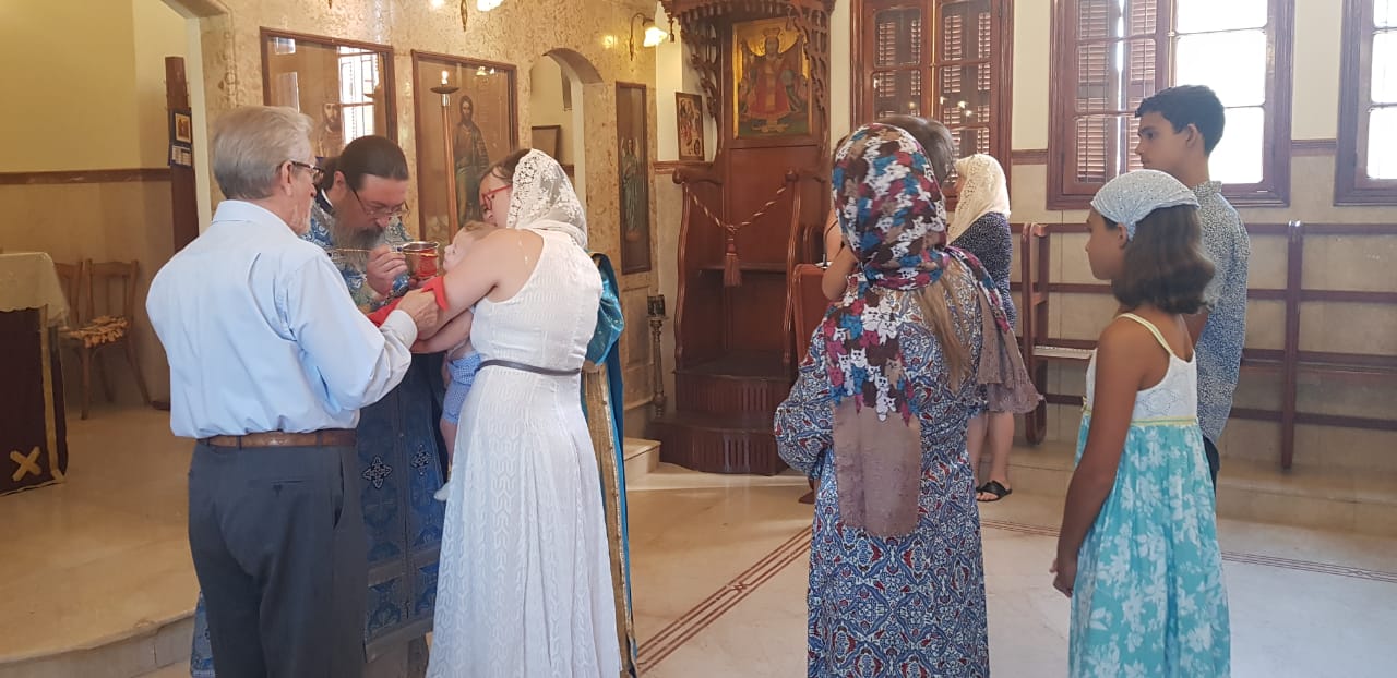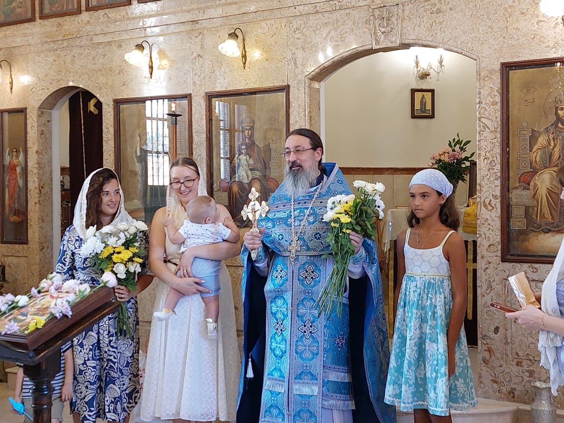 На запричастном стихе был совершён чин воцерковления новокрещенного младенца Георгия, сына прихожанки и сотрудницы Подворья Александры Хаддад.