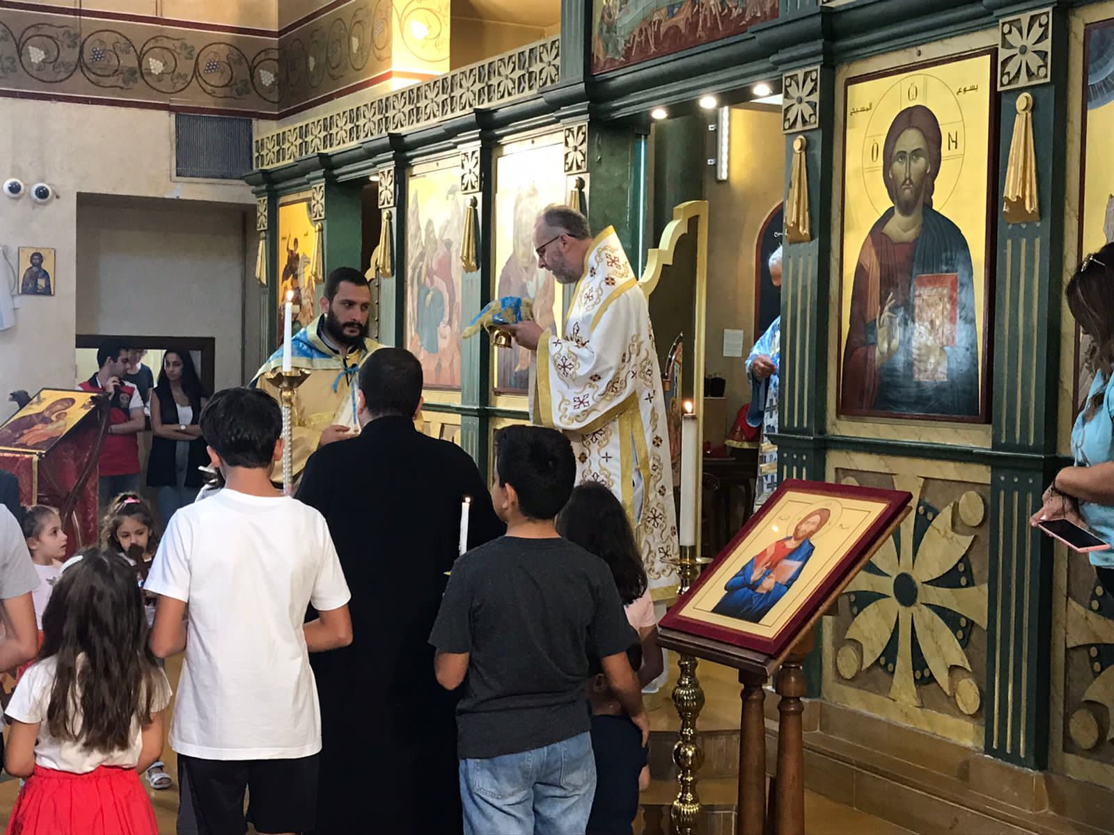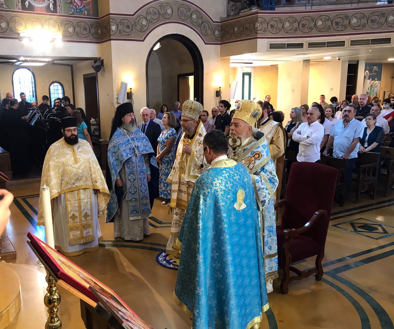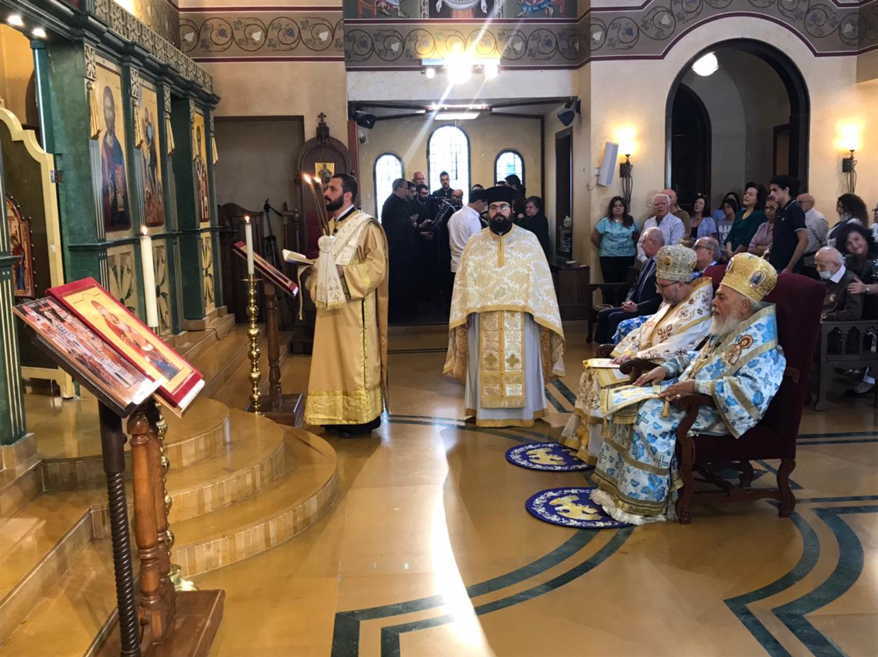Божественную литургию возглавили митрополит Гор Ливанский Силуан и митрополит Филиппопольский Нифон в сослужении настоятеля Подворья Русской Православной Церкви в Ливане архимандрита Филиппа, священников Агабуа Науса и Николя Бу Сааба и диакона Лука Абдо (митрополия Гор Ливанских).