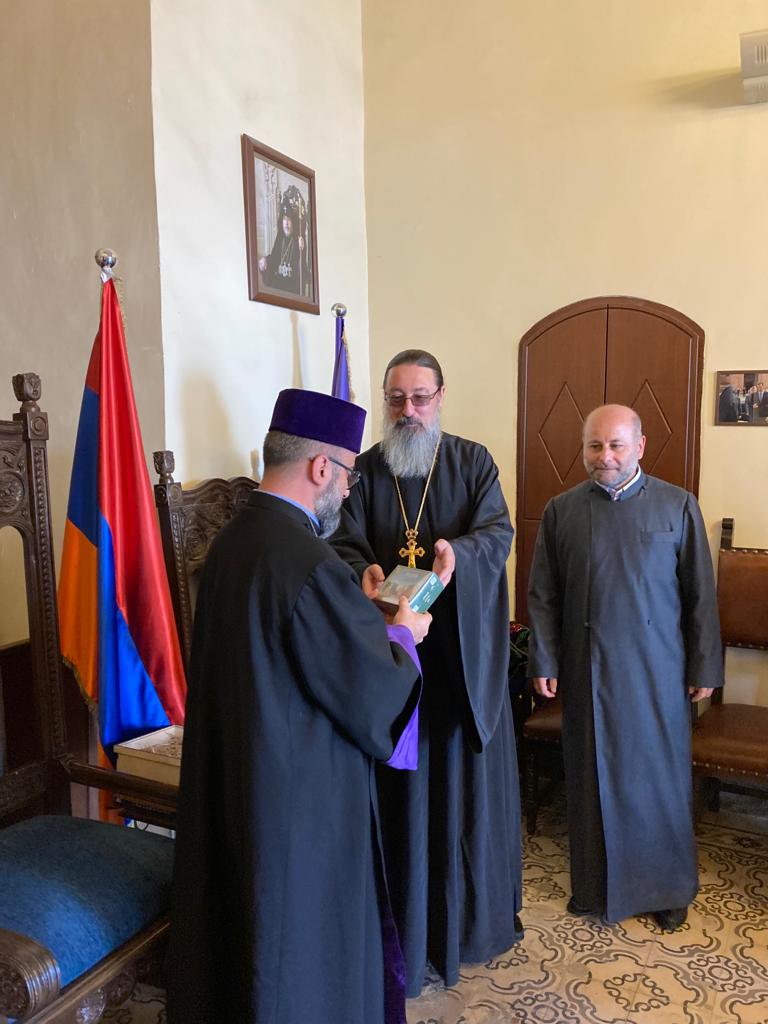 В завершении встречи архимандрит Филипп подарил епископу Армашу Налбандяну несколько комплектов книги Святейшего Патриарха Московского и всея Руси „Свобода и ответственность“ на арабском языке.