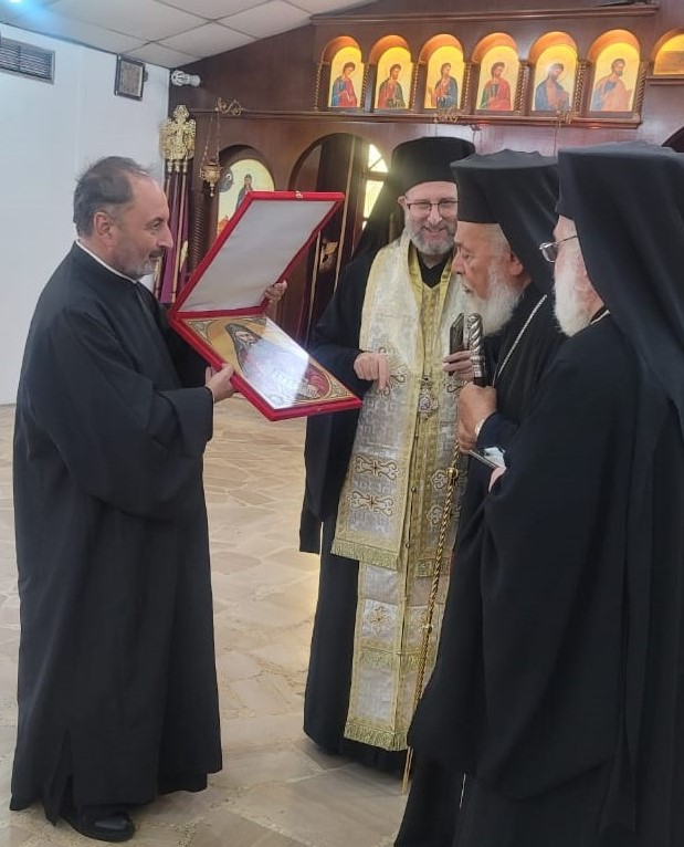 Митрополит Силуан также тепло приветствовал митрополита Нифона, подарил Ему панагию и икону с изображением преподобного Силуана Афонского.