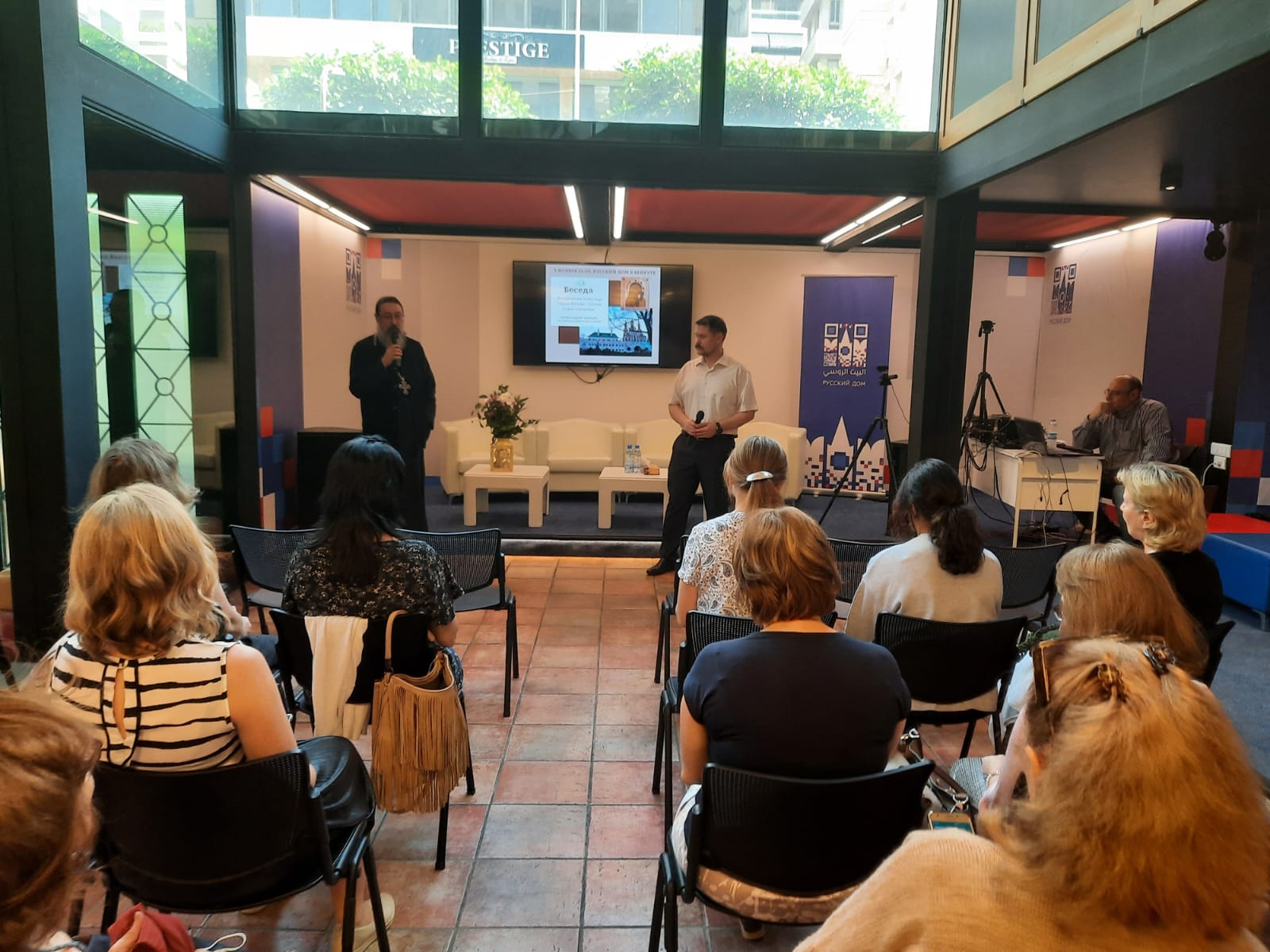 В беседе приняли участие директор «Русского дома» в Бейруте Сорокин А.А., член Координационного совета Ближнего Востока и Северной Африки Сафо С. и прихожане Подворья Русской Православной Церкви.
