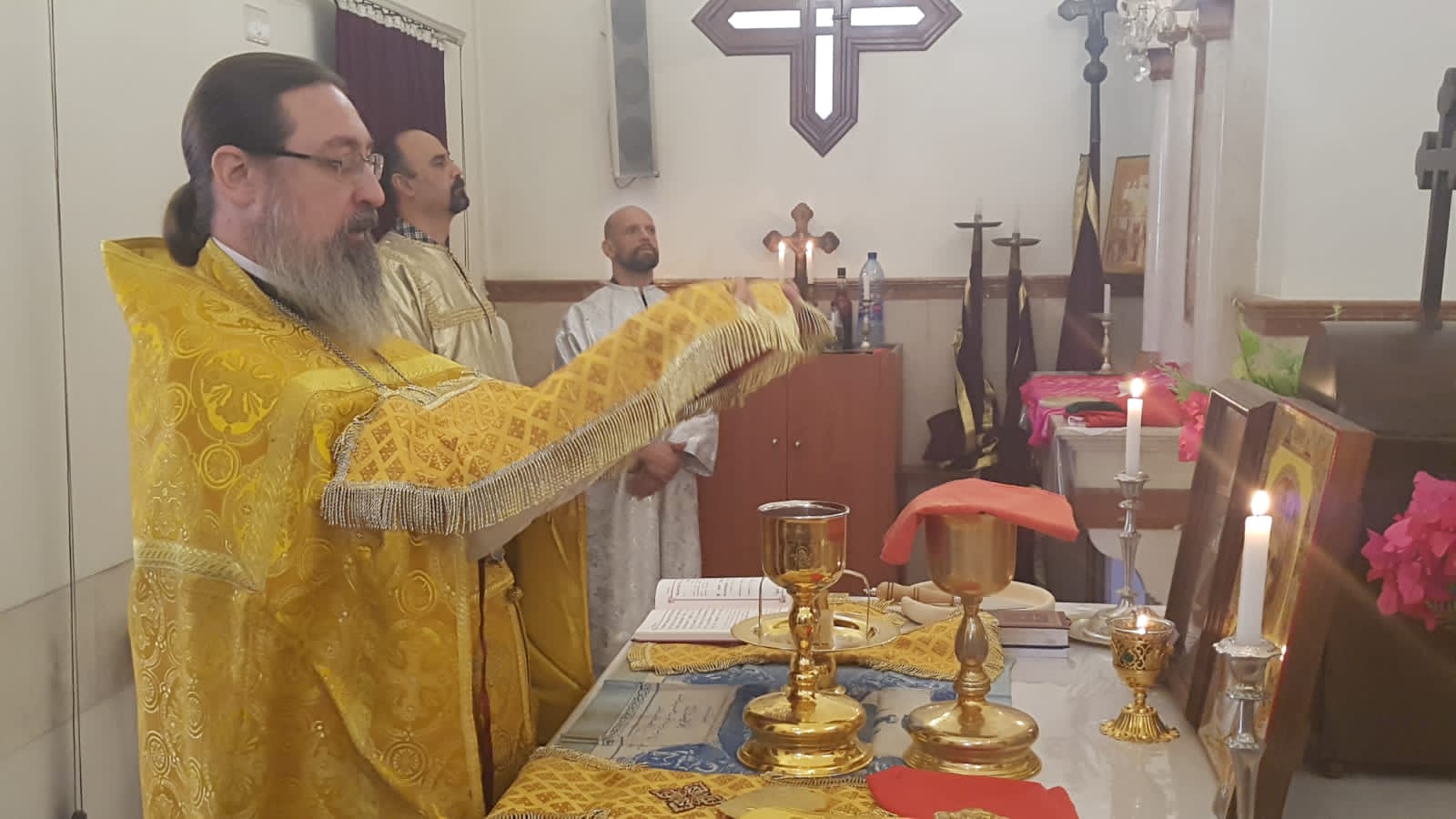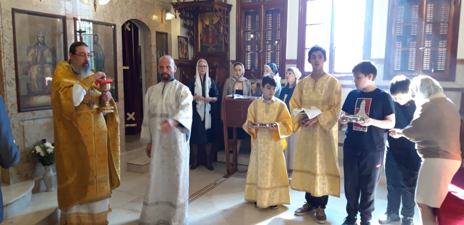 Богослужение совершалось на церковнославянском и арабском языках.