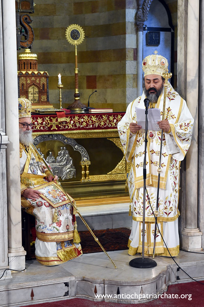 После отпуста Божественной литургии с Первосвятительским словом к пастве обратился Блаженнейший Патриарх Иоанн. Блаженнейший Владыка сердечно приветствовал митрополитов, участвующих в богослужении, представителя Святейшего Патриарха Московского и всея Руси Кирилла при Антиохийском Патриаршем Престоле архимандрита Филиппа и всех чад Святого Антиохийского Престола на Родине и в иных странах мира.