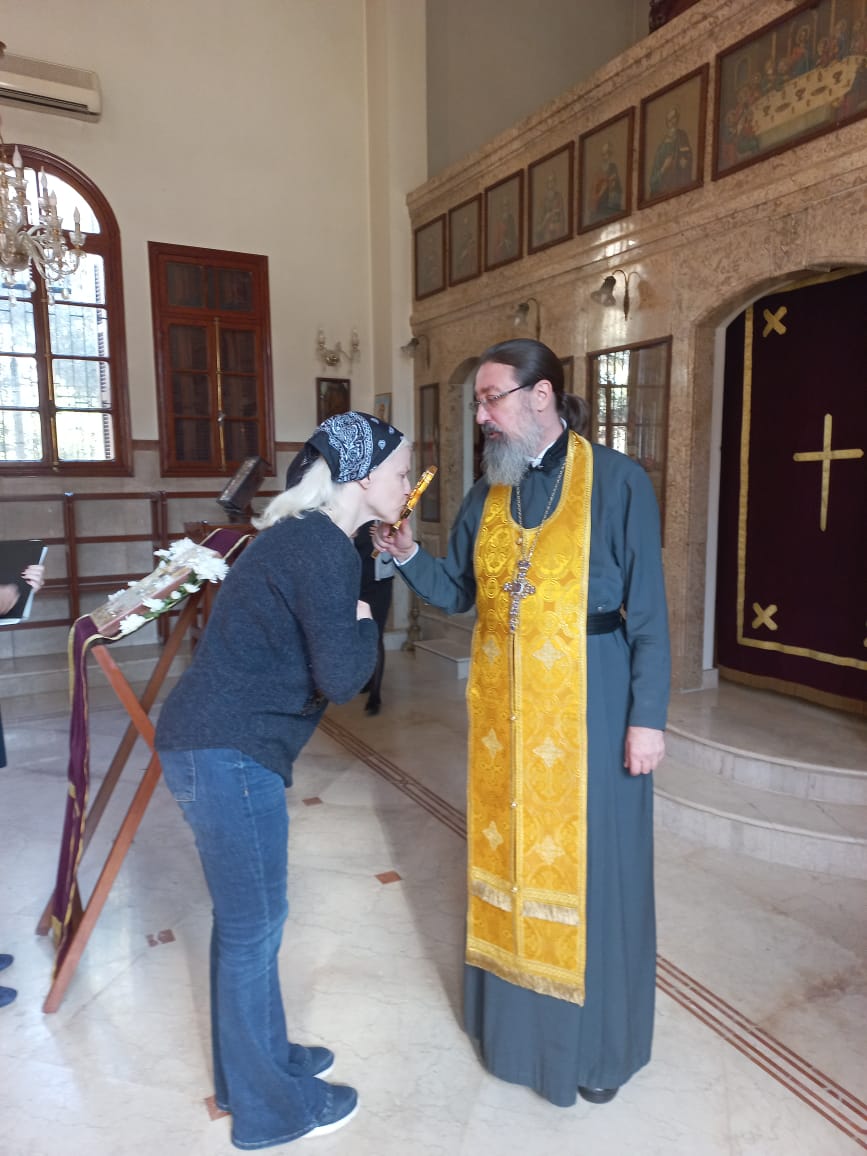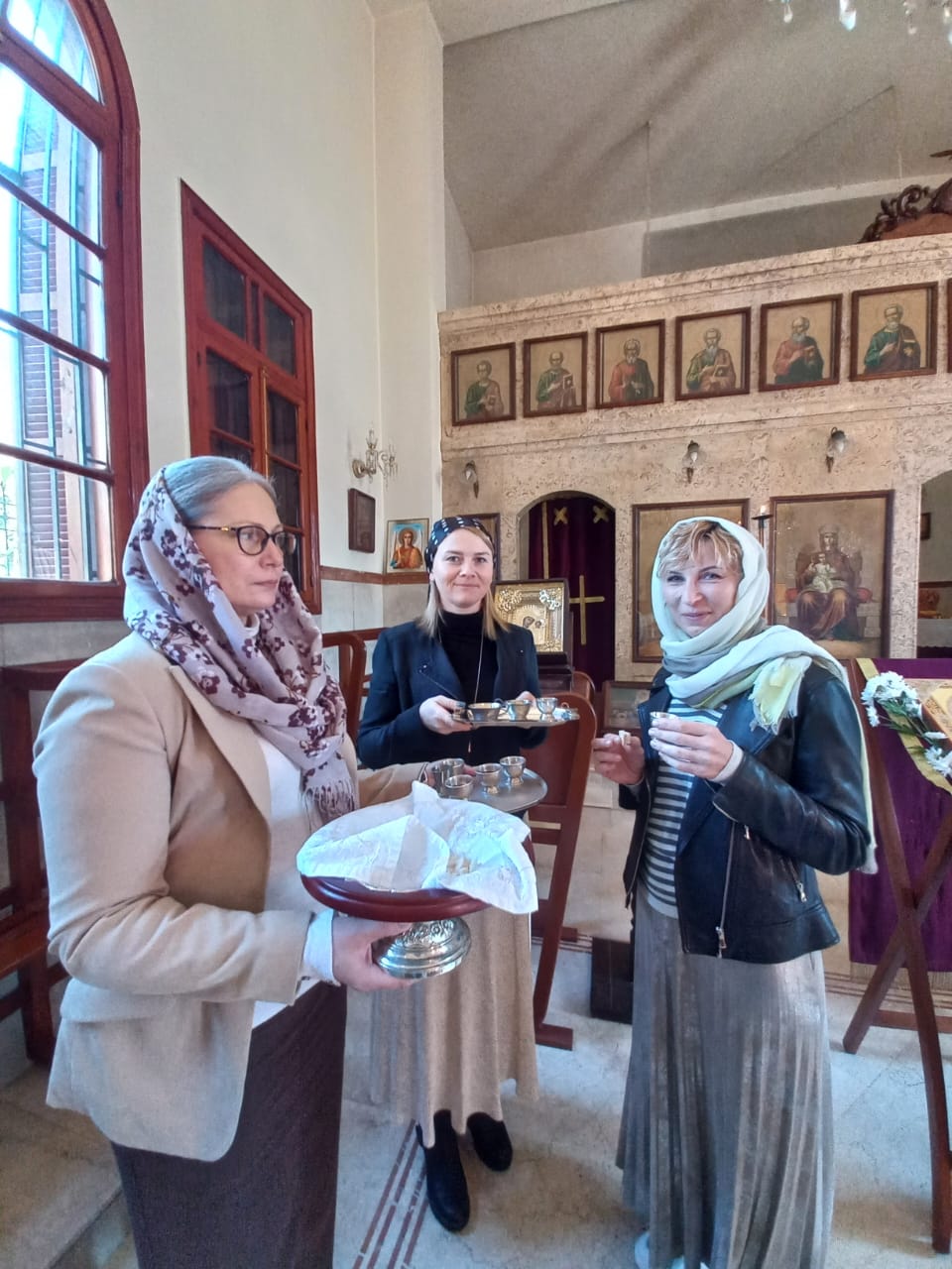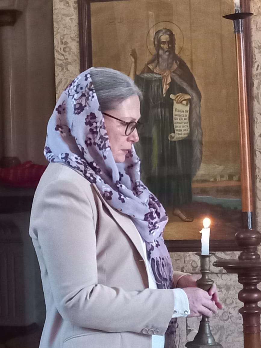 Затем настоятель поздравил с прошедшим Днем Ангела и Днем рождения регента Подворья Е. Баранову и постоянную прихожанку С. Шаиб, подарил им памятные подарки и возгласил многолетие.