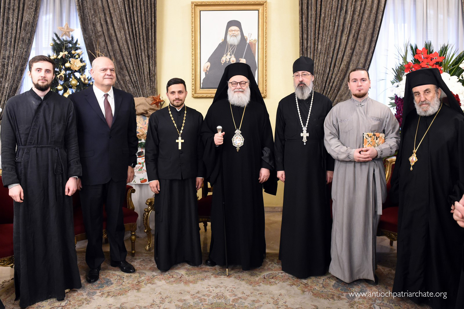 После отпуста Божественной литургии архимандрит Филипп сердечно приветствовал Блаженнейшего Патриарха Иоанна и передал ему Рождественское поздравление Святейшего Патриарха Московского и всея Руси Кирилла и Председателя Отдела внешних церковных связей Московского патриархата митрополита Волоколамского Антония.
