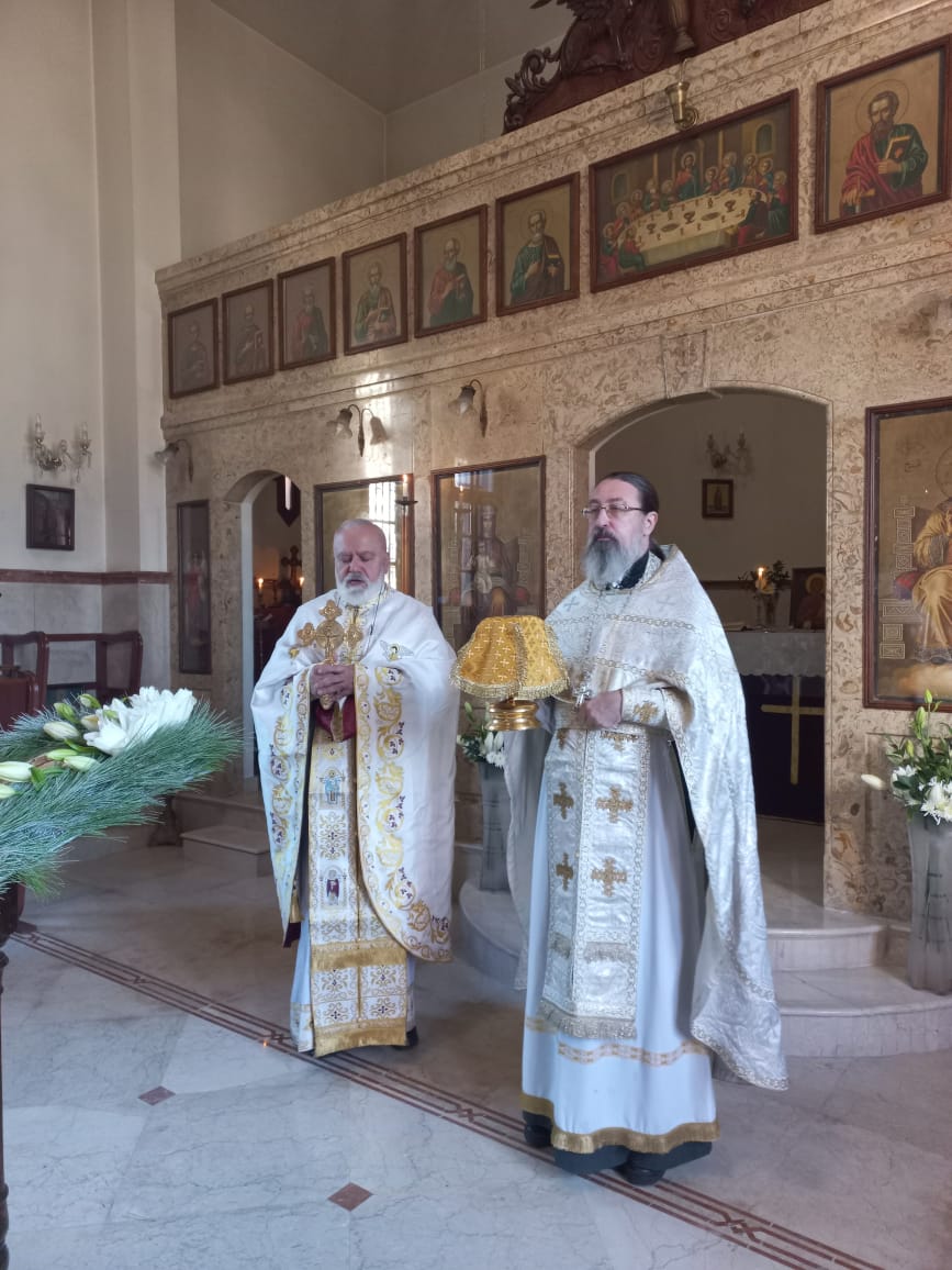 В четверг, 19 января, в день великого двунадесятого праздника Богоявления Господня Божественную литургию в храме святого Иоанна Предтечи возглавил архимандрит Филипп в сослужении настоятеля храма святителя Николая Чудотворца в Сайде протоиерея Иосифа Кфури и дьякона Максима Сабаха.