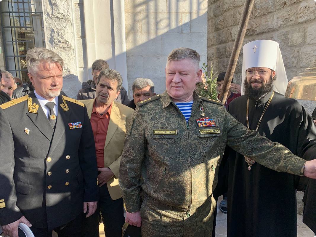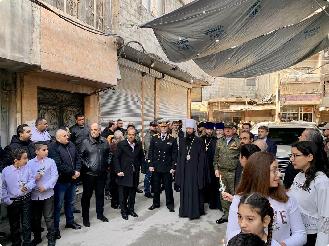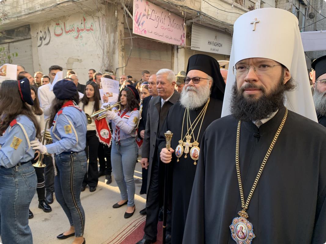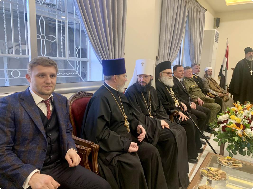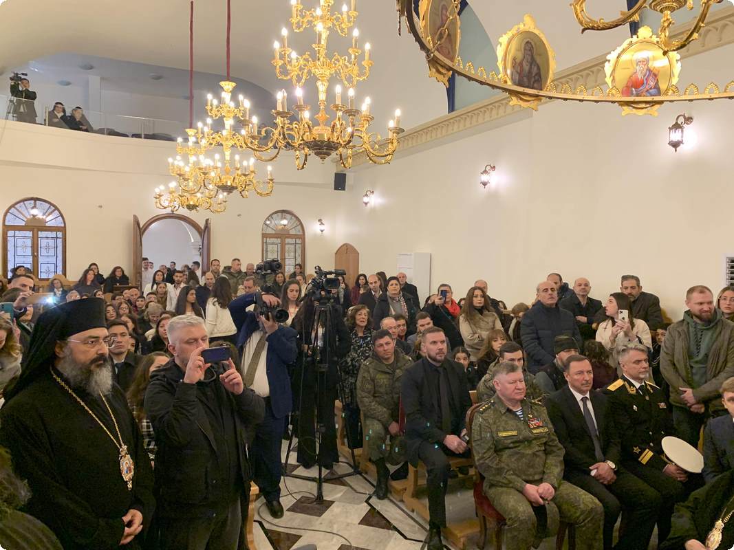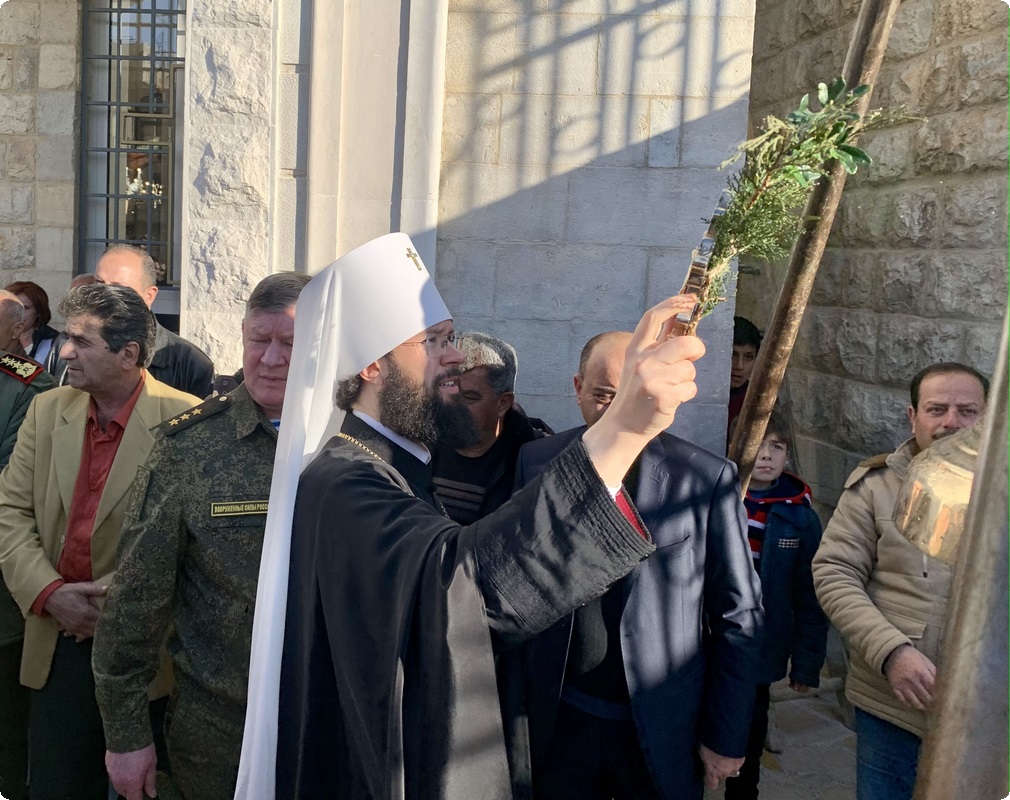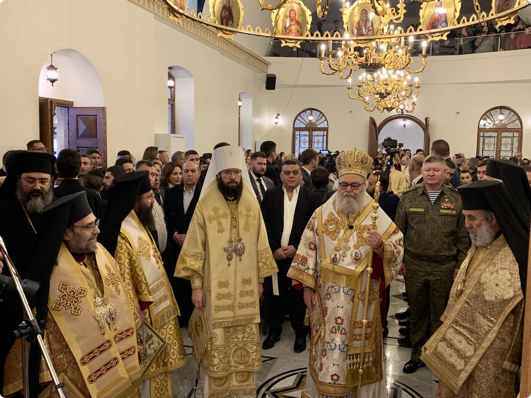 Его Блаженство также упомянул, что по благословению Святейшего Патриарха Кирилла в освящении храма участвует председатель ОВЦС митрополит Волоколамский Антоний. Кроме того, на торжестве присутствуют посол Российской Федерации в Сирийской Арабской Республике А.В. Ефимов и командующий группой войск Вооруженных сил Российской Федерации в Сирийской Арабской Республике генерал-полковник А.Н. Сердюков.