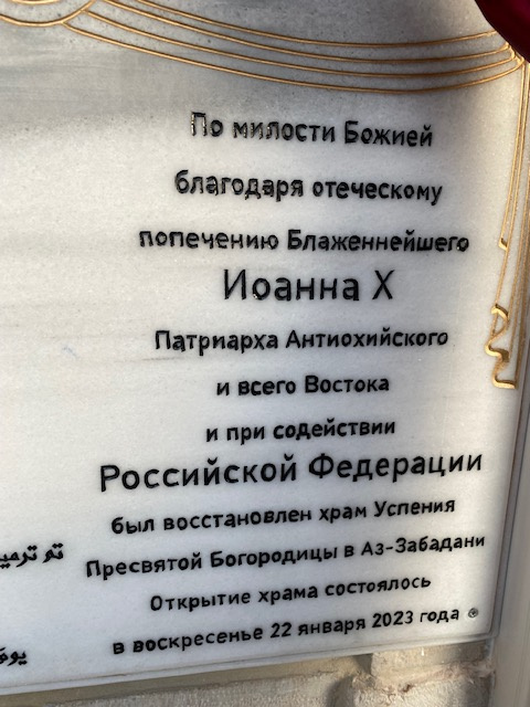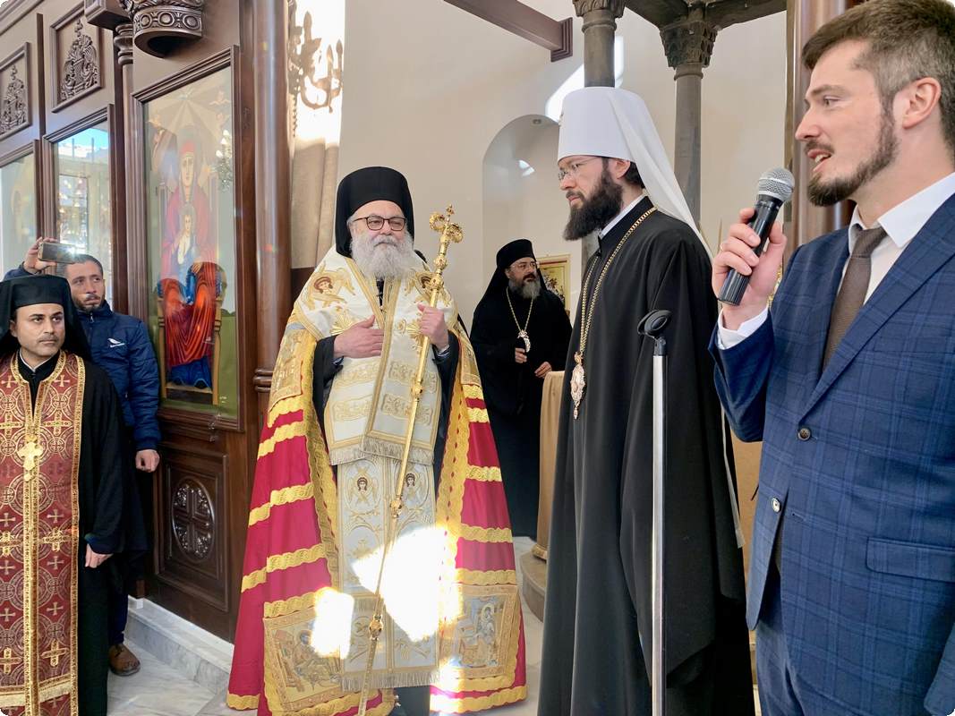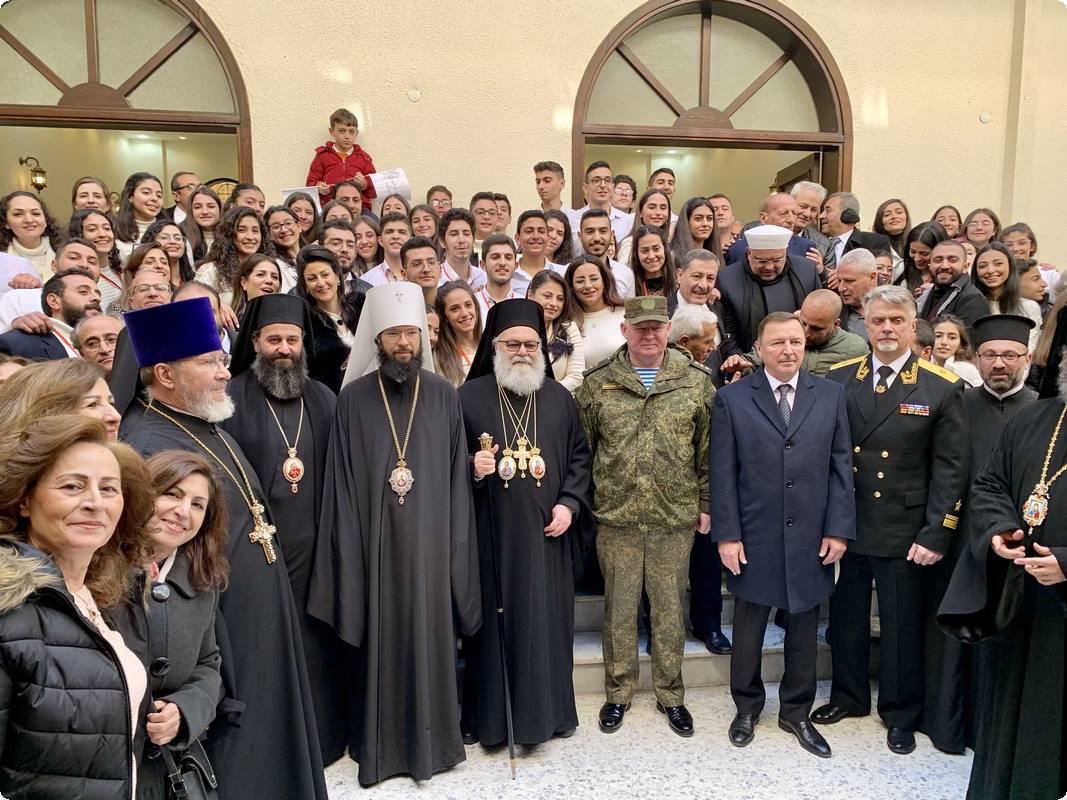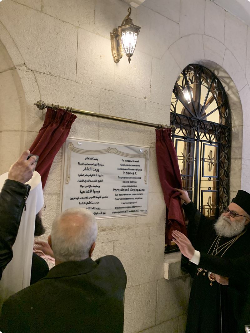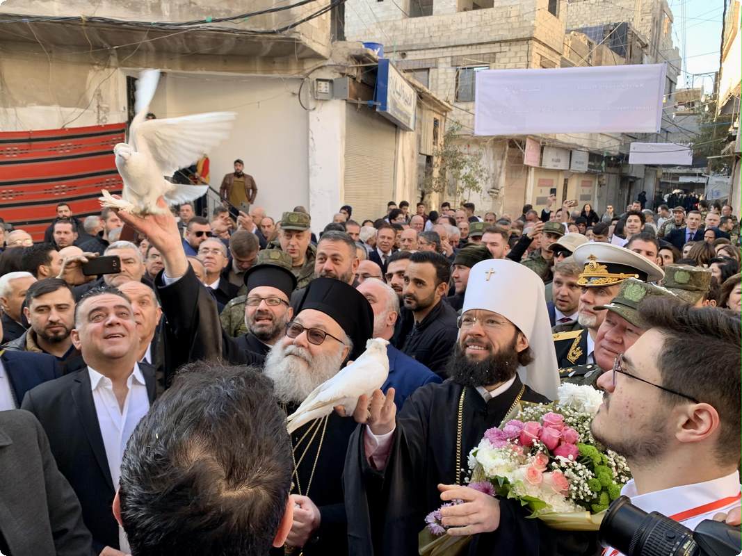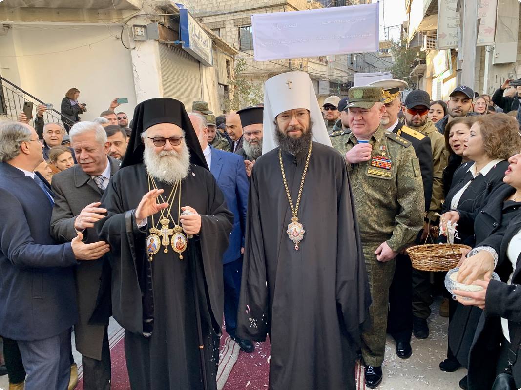 Отметив, что на это торжество прибыли, в частности, председатель Отдела внешних церковных связей Московского Патриархата митрополит Волоколамский Антоний и члены возглавляемой им делегации Русской Православной Церкви, а также посол Российской Федерации в Сирии А.В. Ефимов и командующий группой войск Вооруженных сил Российской Федерации в Сирийской Арабской Республике генерал-полковник А.Н. Сердюков, Его Блаженство подчеркнул: «Ваше присутствие здесь еще раз подтверждает единство, которое связывает наши Церкви — Антиохийскую и Русскую. Мы едины. В рамках этого единства Российское государство и Русская Православная Церковь приняли решение помочь нам восстановить то, что было разрушено войной. Сегодня мы во славу Божию вновь стоим в этом храме, отстроенном совместными усилиями».