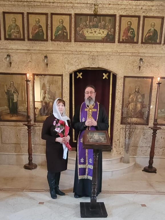 В конце богослужения настоятель поздравил с прошедшим днем рождения постоянных прихожанок Подворья Татьяну Ромаль и Ирину Салху.