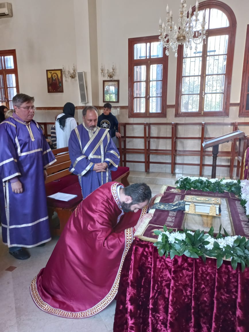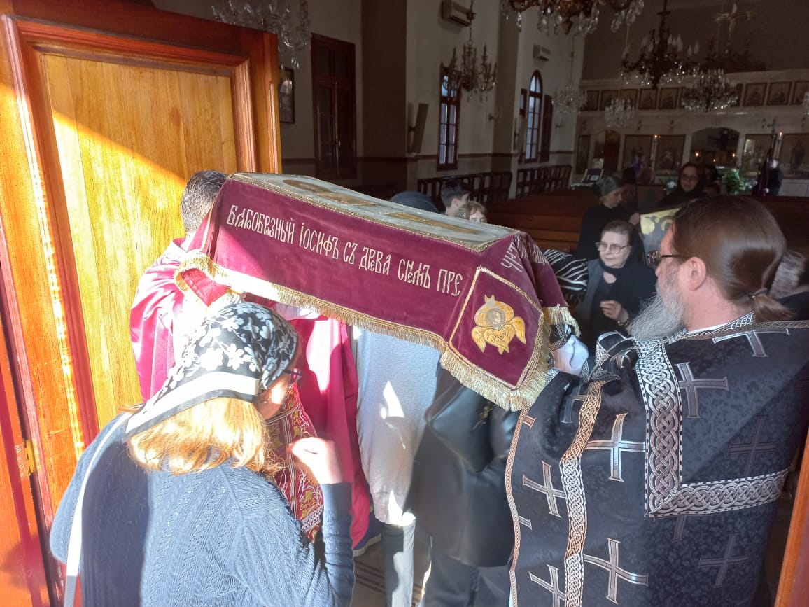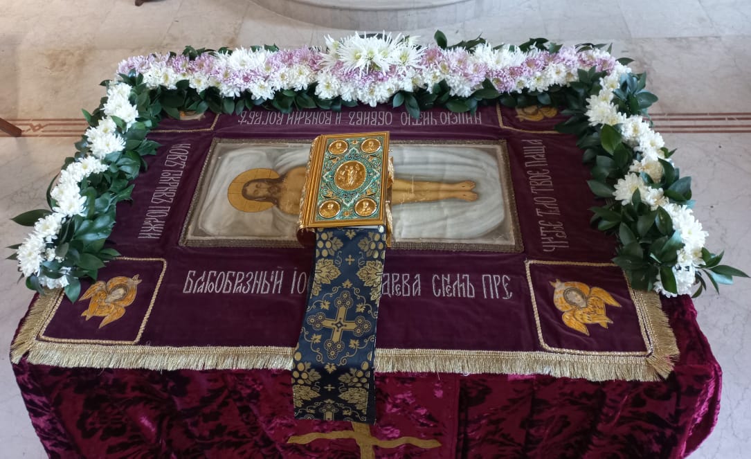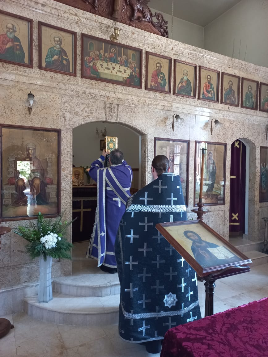 В Великую пятницу, 14 апреля, в храме святого Иоанна Предтечи была совершена Вечерня с Чином выноса Плащаницы Спасителя. Богослужение совершил архимандрит Филипп в сослужении иерея Лазаря и дьякона Максима Сабаха.