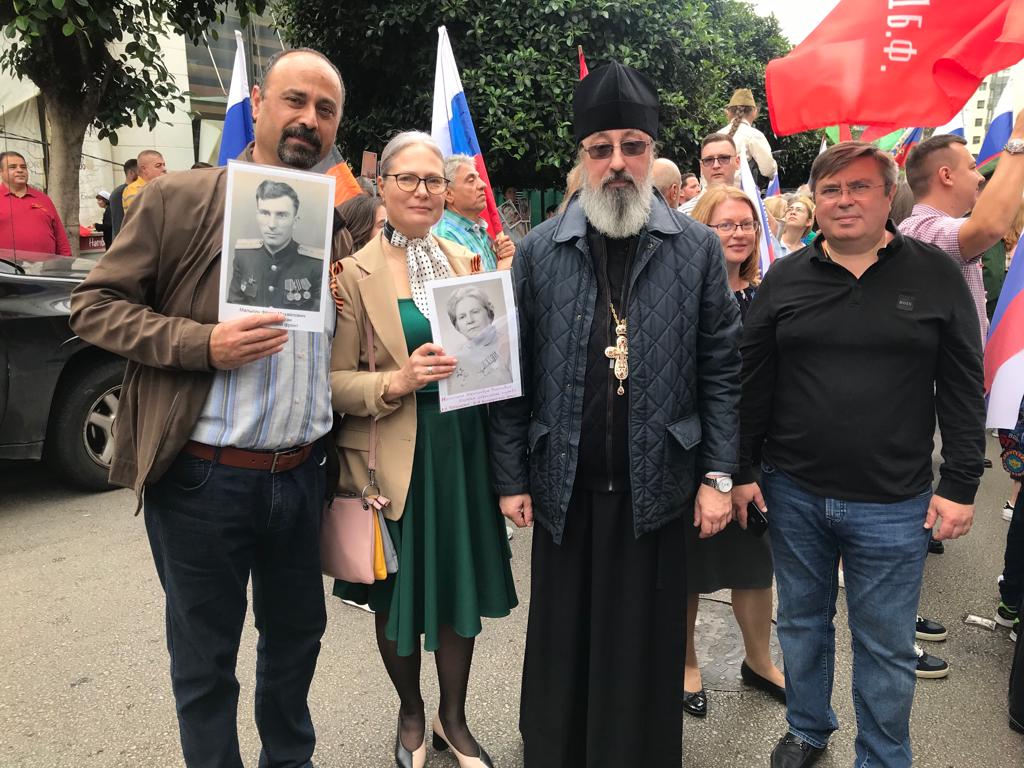 После окончания богослужения настоятель и прихожане Подворья приняли участие в шествии Бессмертного полка, начавшегося от храма святого Иоанна Предтечи.
