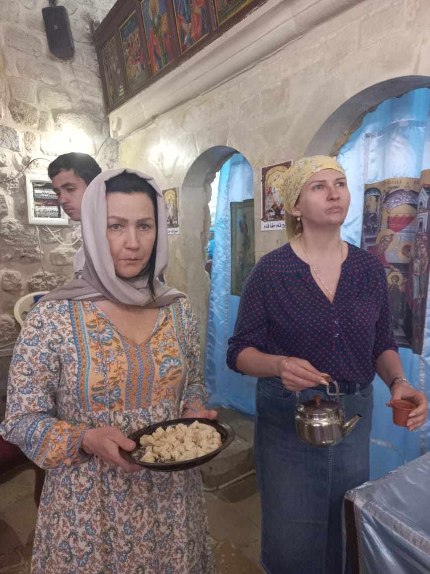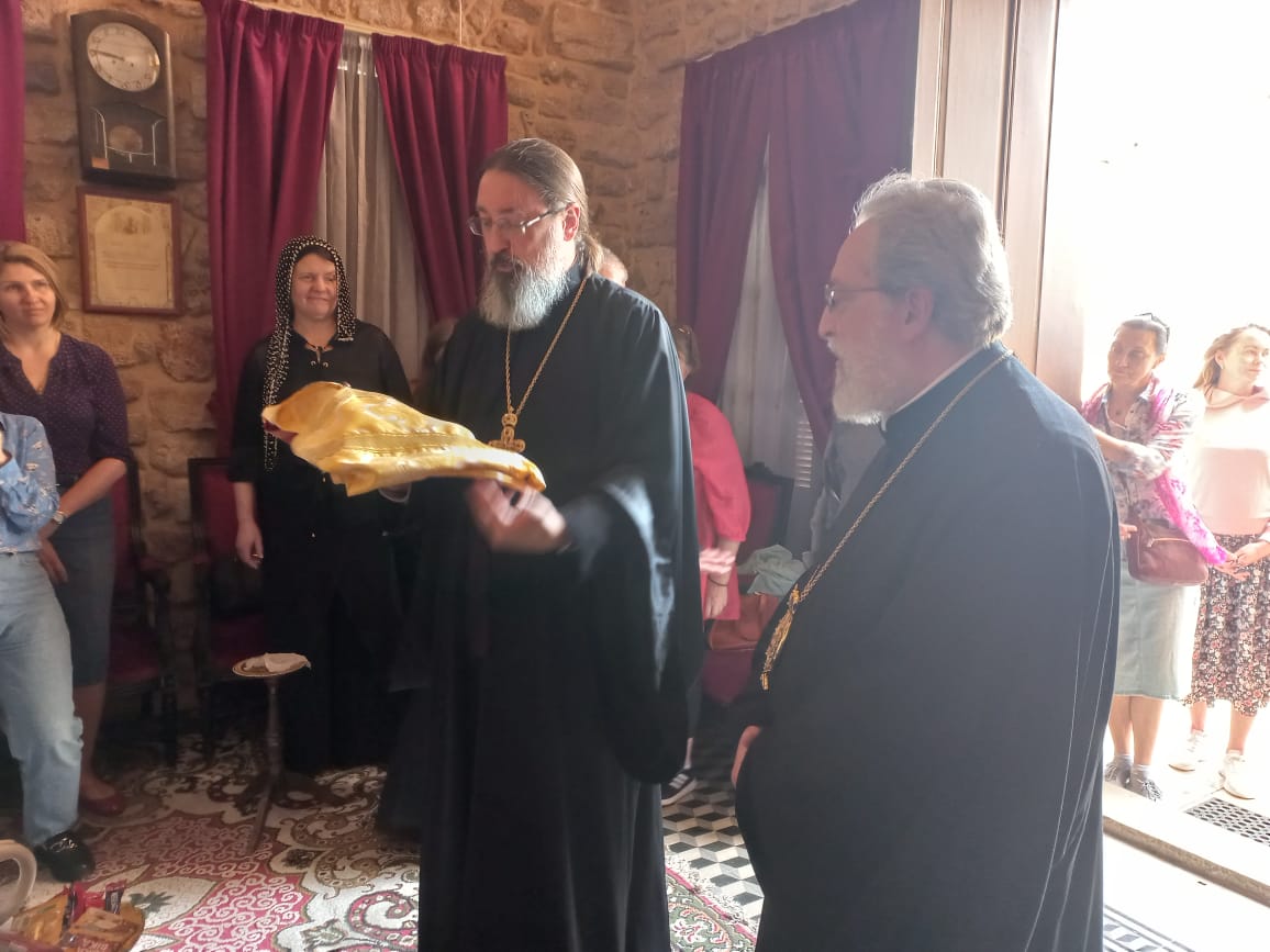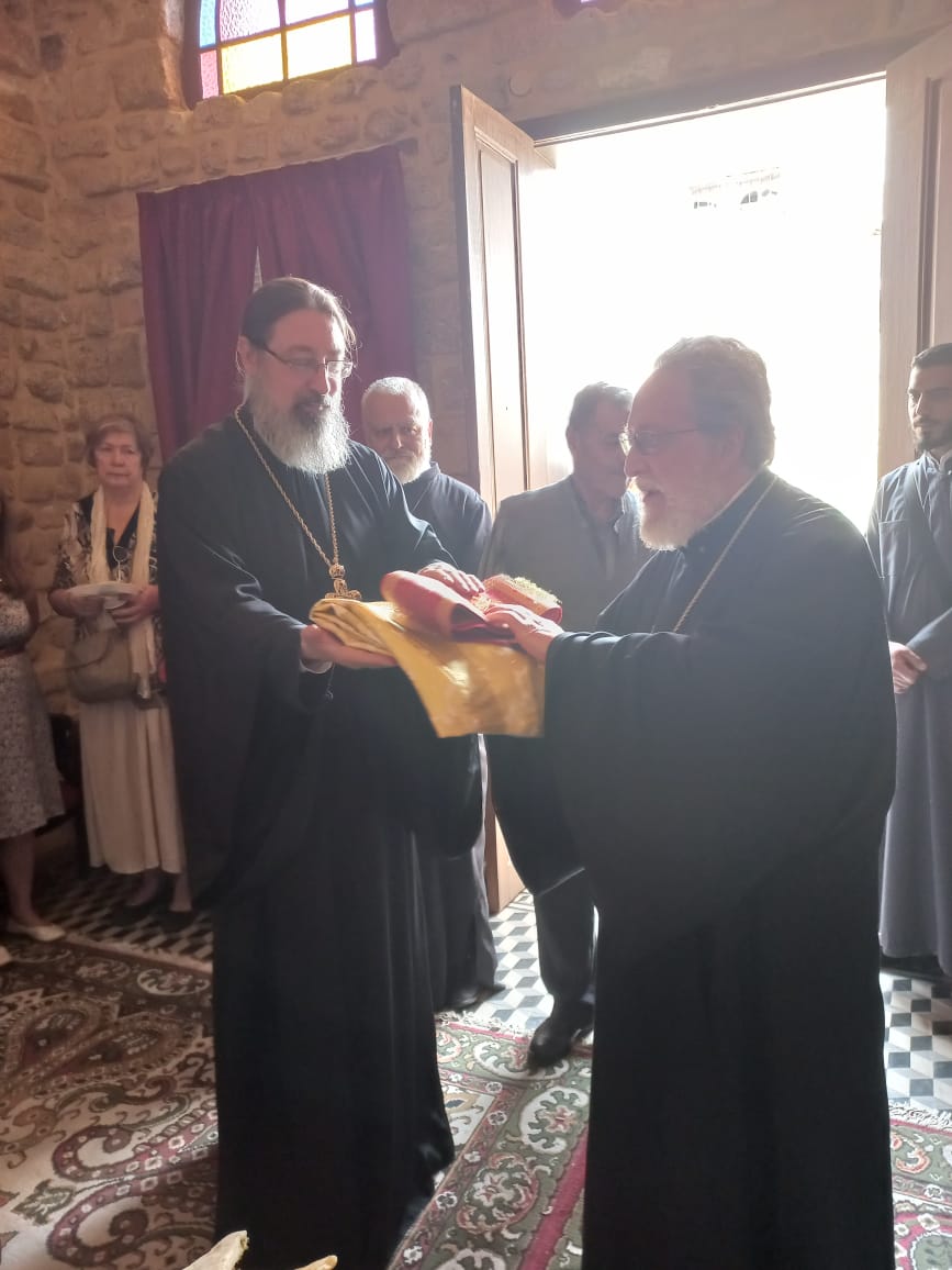 Перед началом чаепития архимандрит Филипп поздравил Владыку Илию с пасхальными праздниками и днём памяти святителя Николая Чудотворца, подарил ему дьяконский стихарь с орарем и поблагодарил его за вниманием к нуждам русскоязычной православной общины Тира и Сайды (евангельский Сидон).