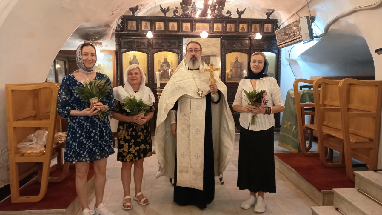 После отпуста панихиды настоятель прочитал молитву святым равноапостольным царям Константину и Елене, поздравил с днём Тезоименитства постоянных прихожанок Подворья Елену Дирани, Елену Пономареву и Елену Ногтеву, возгласил им многолетие и вручил памятные подарки.