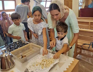 После окончания богослужения в приходском зале храма Благовещения и на территории церковного двора была открыта Покровская благотворительная ярмарка.
